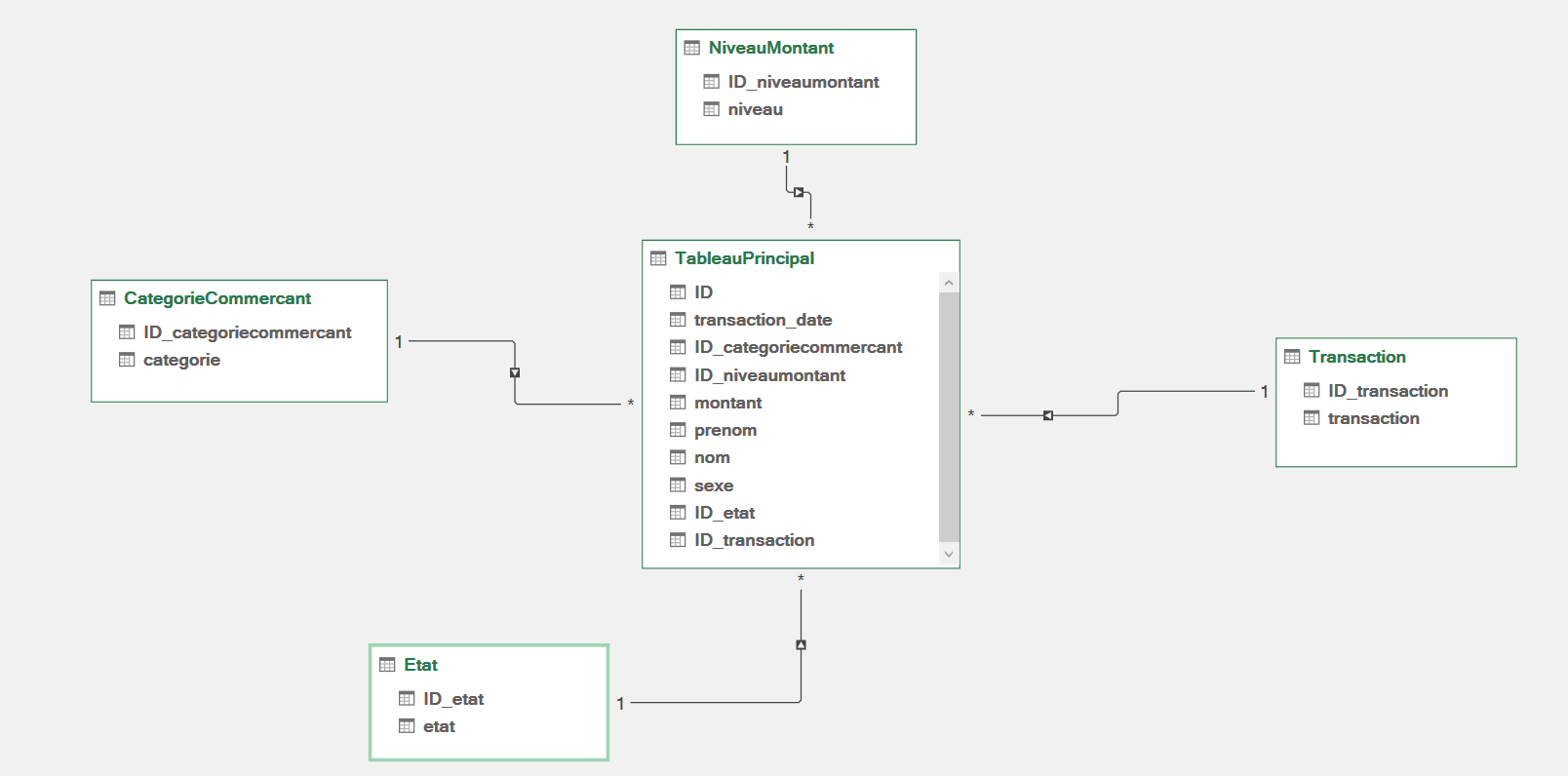 Une modélisation en étoile a ensuite été mise en place pour structurer l’analyse et faciliter la lecture des indicateurs par des profils métiers.